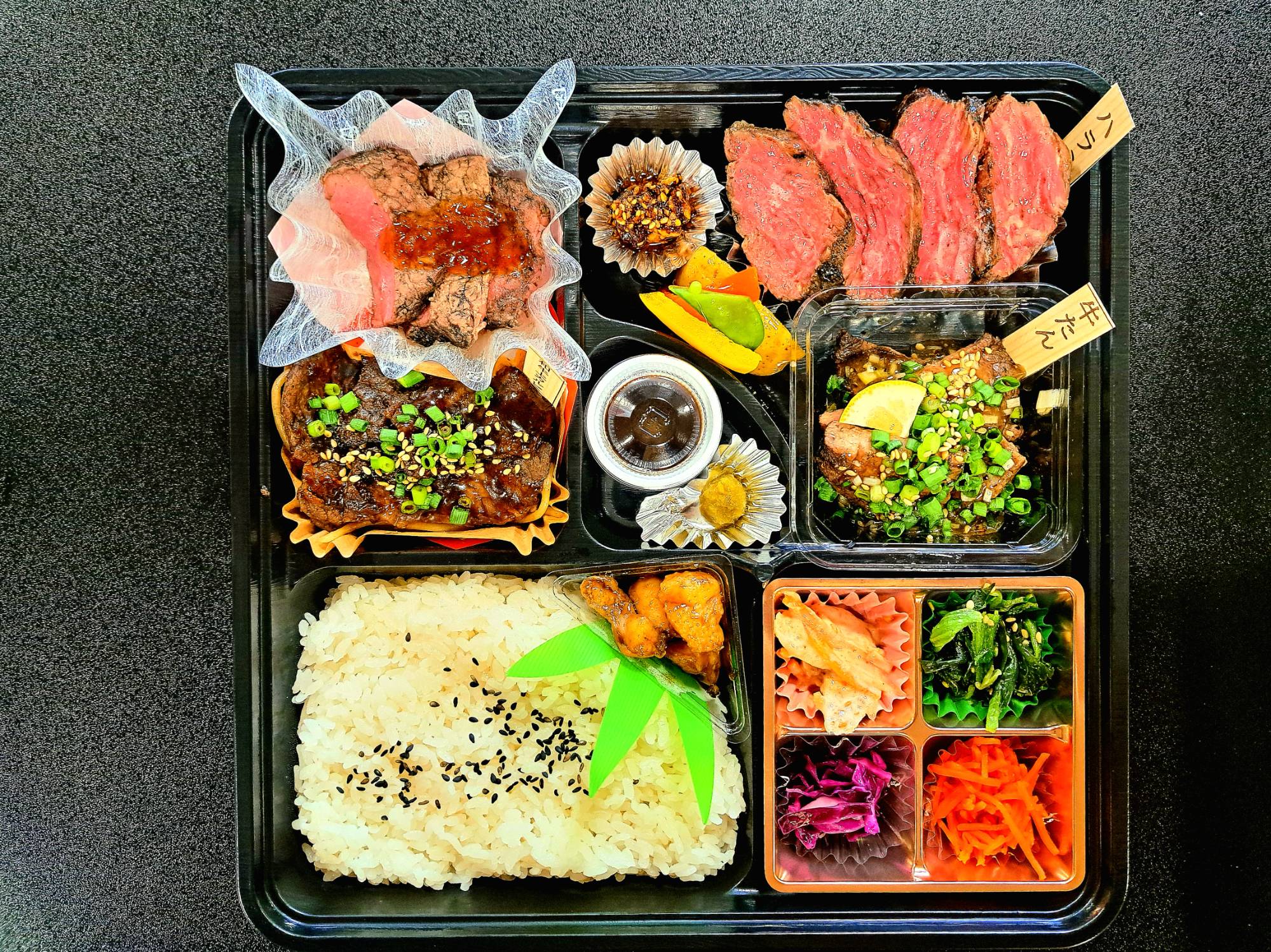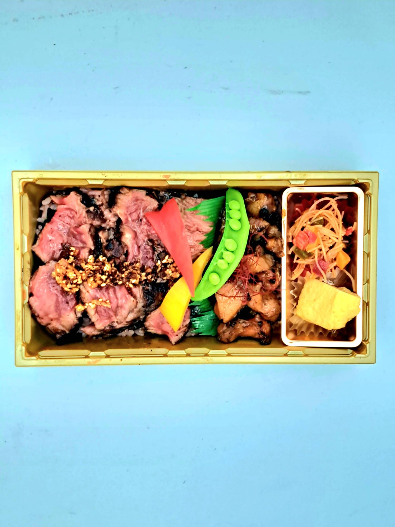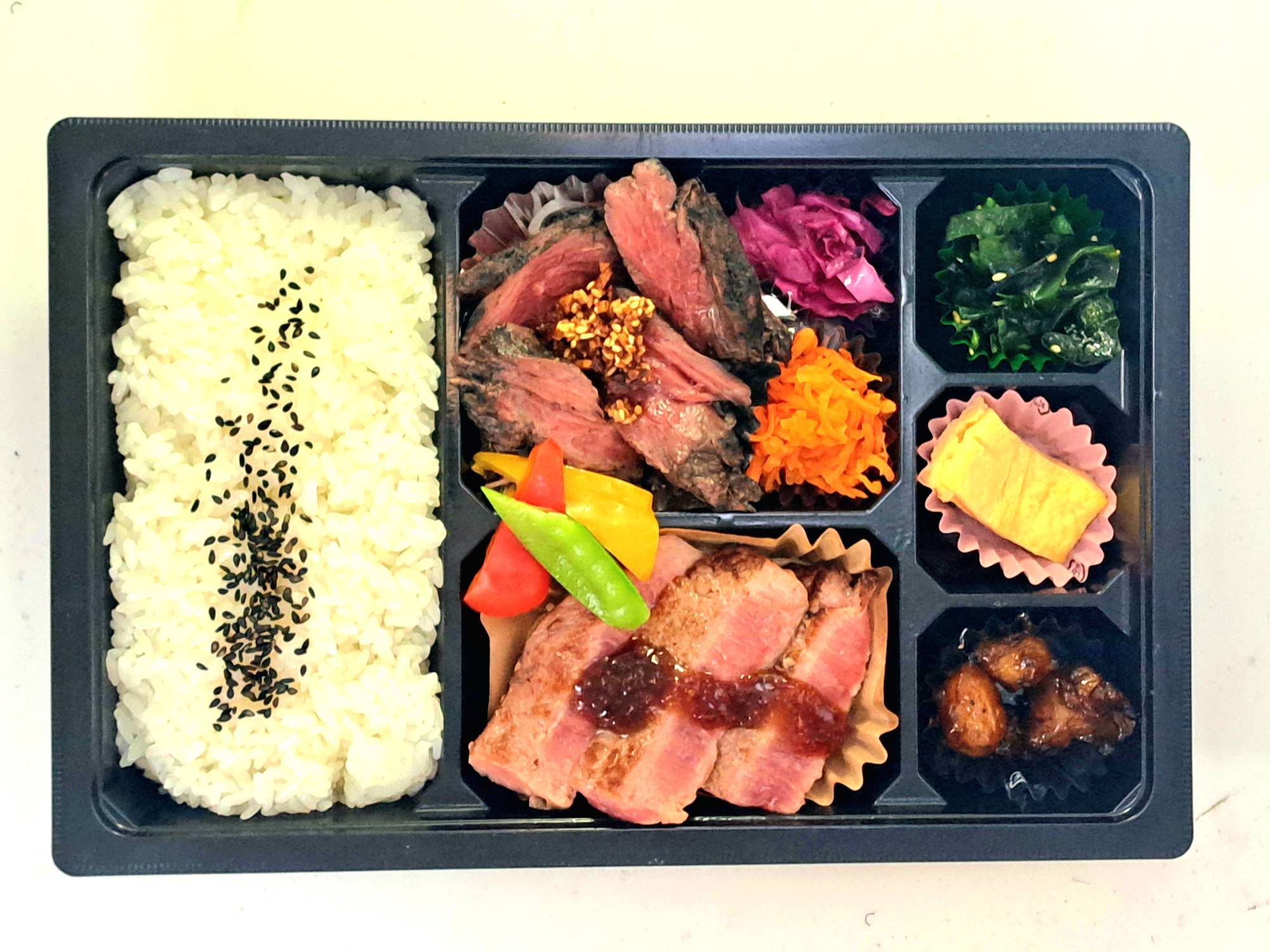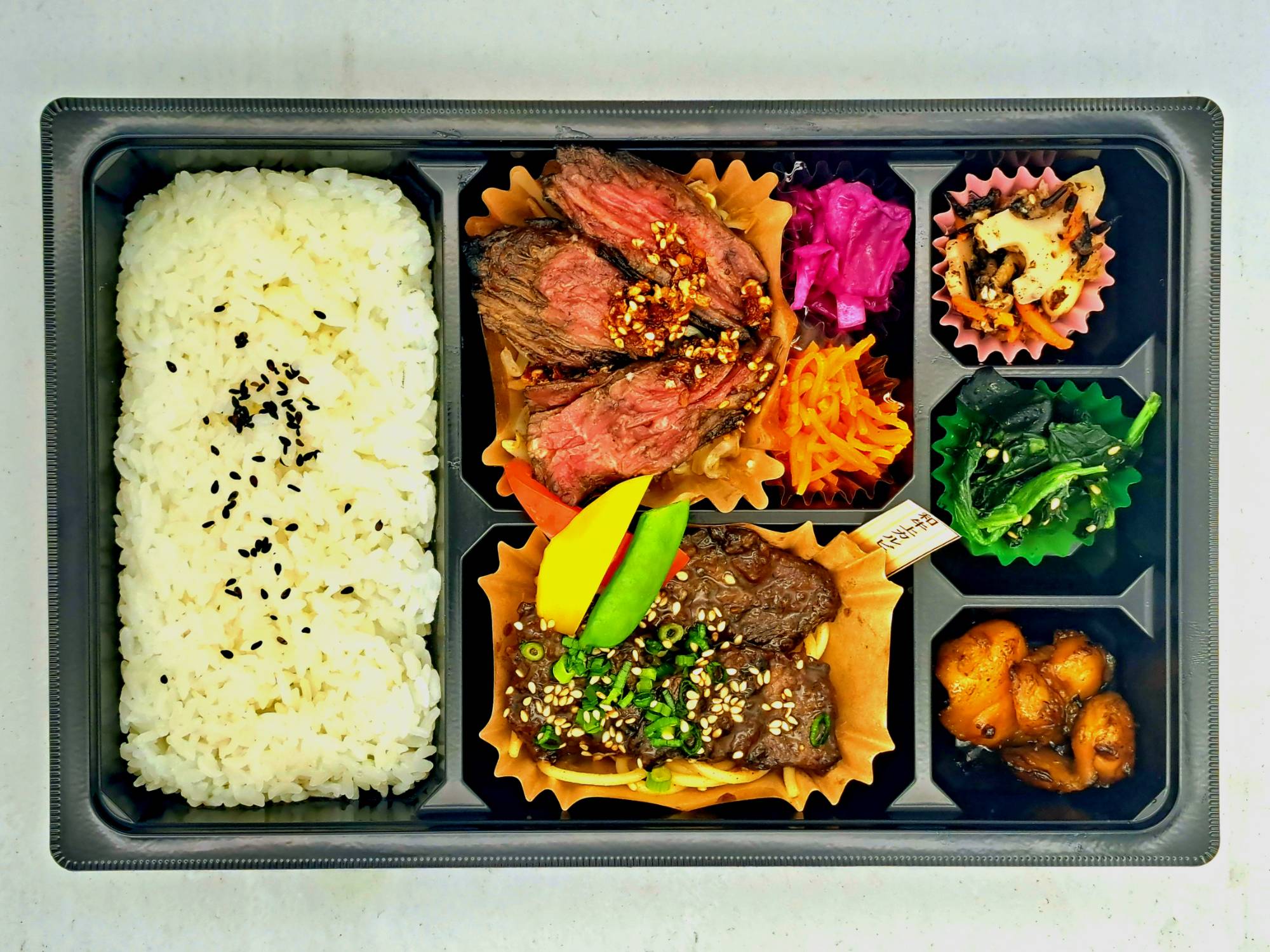 人気のハラミとステーキの王様サーロインとのコラボ弁当