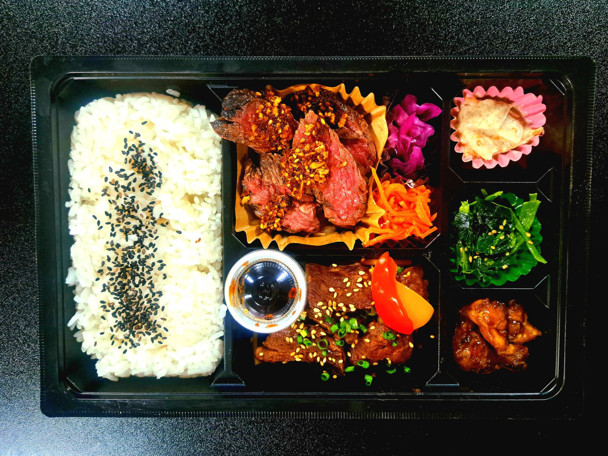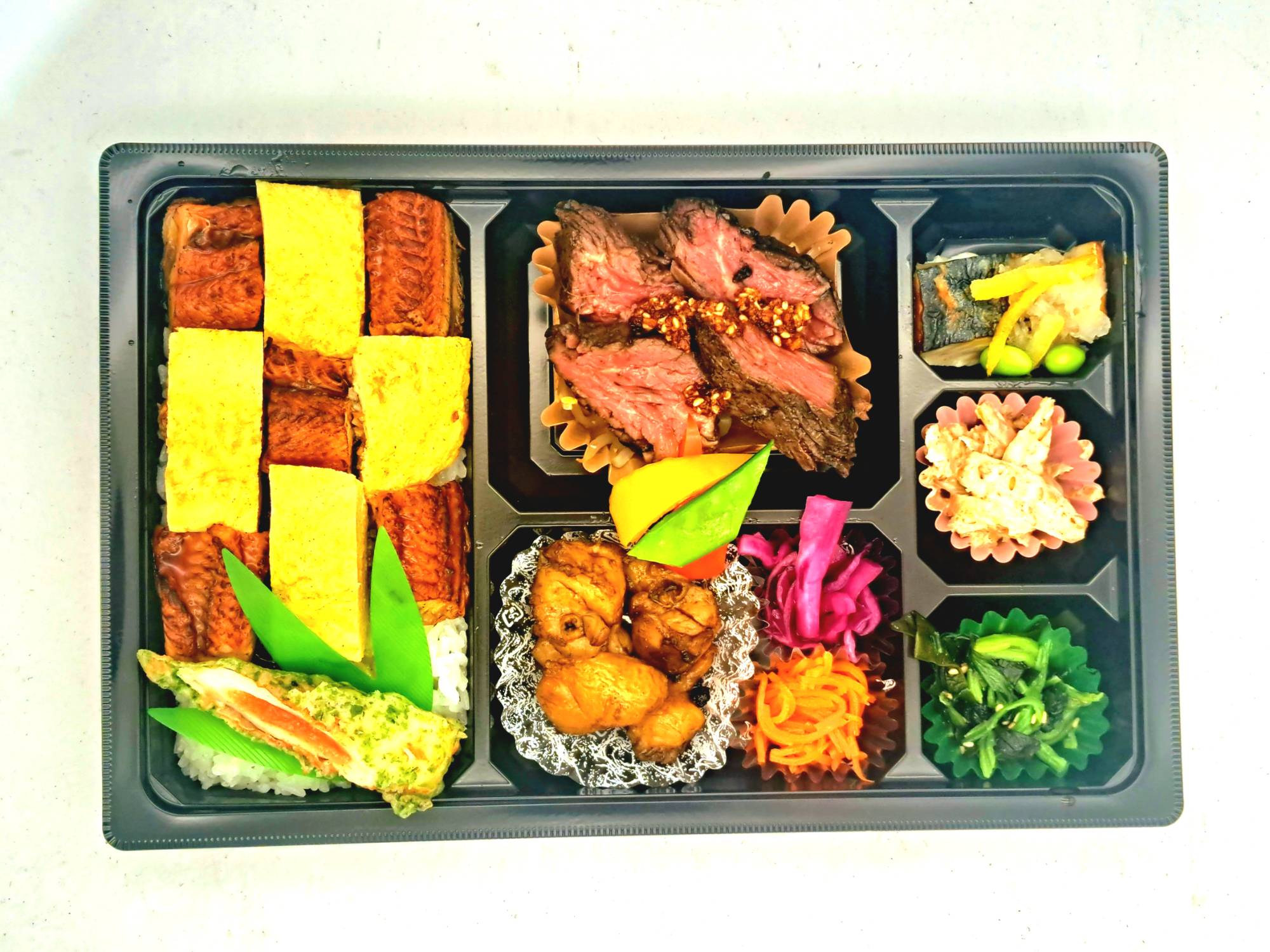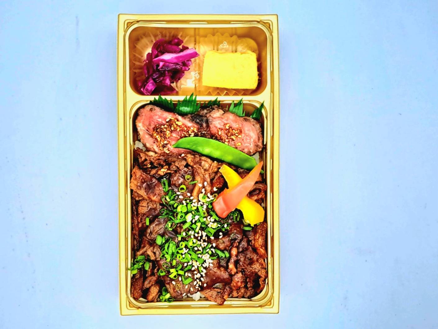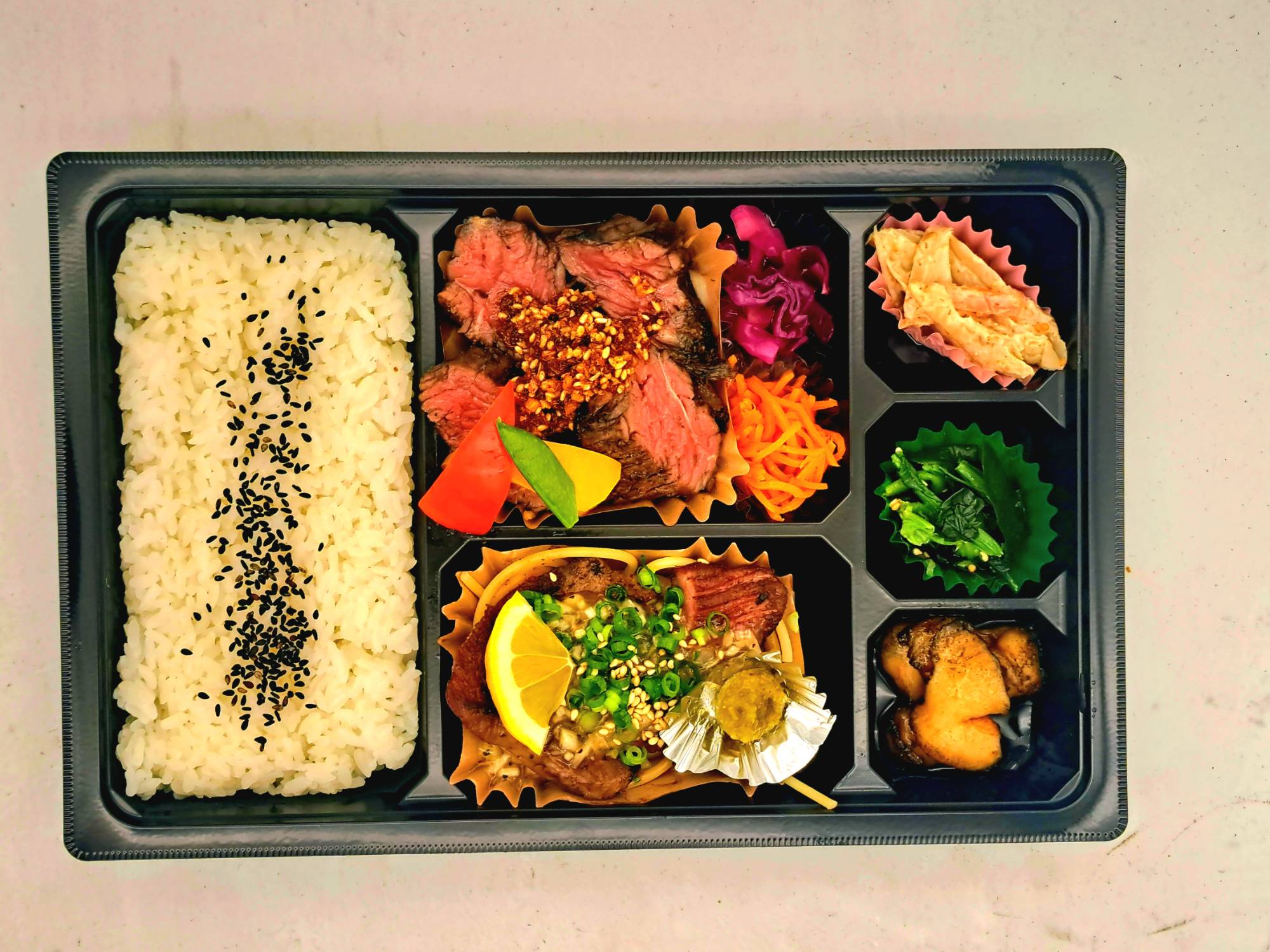 人気のハラミとステーキの王様サーロインとのコラボ弁当