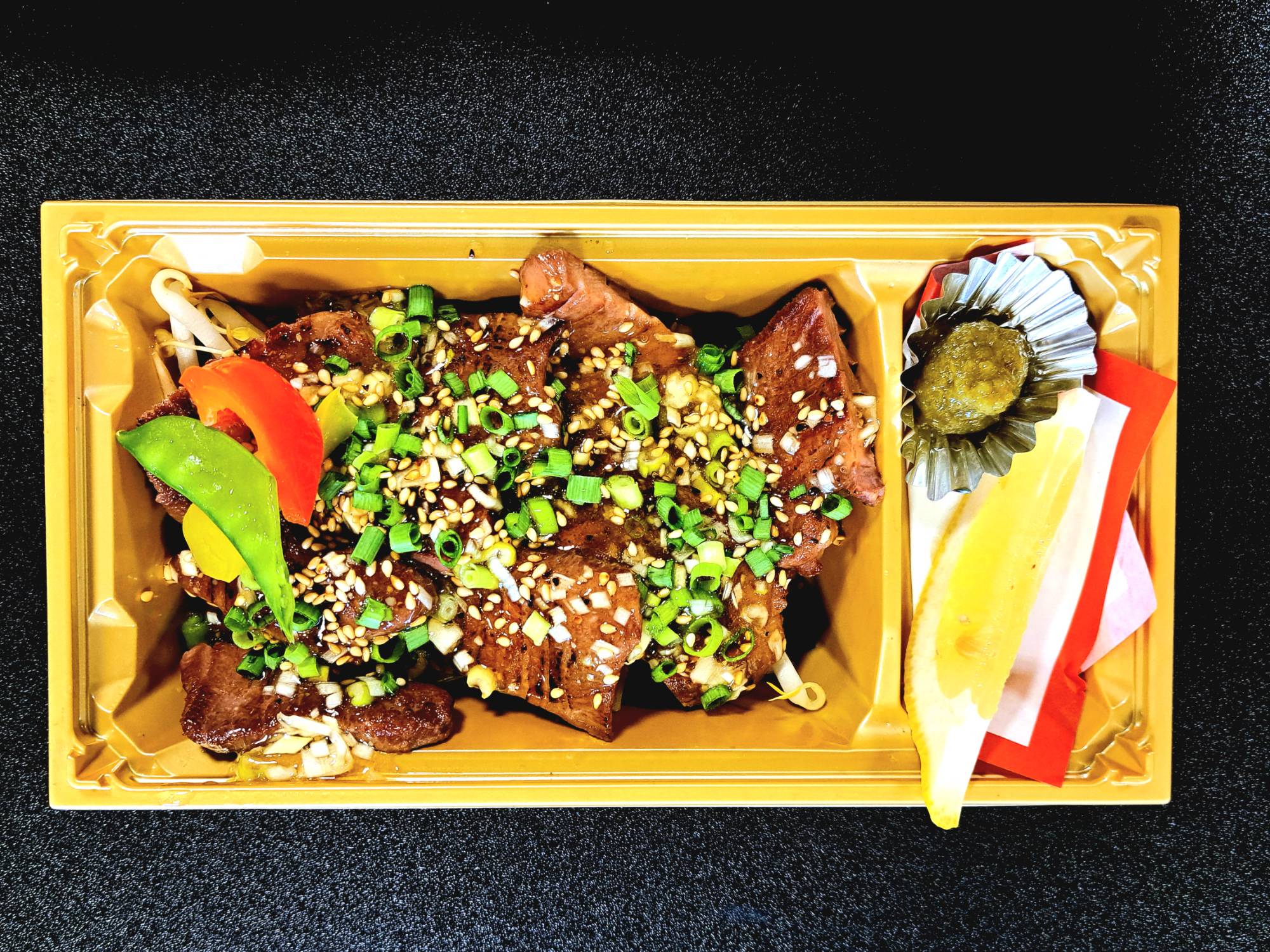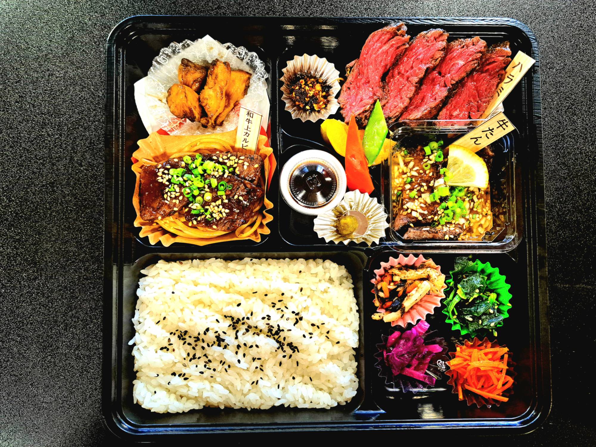 炭焼きハラミ&和牛上カルビ弁当炭焼き鶏つき1930円