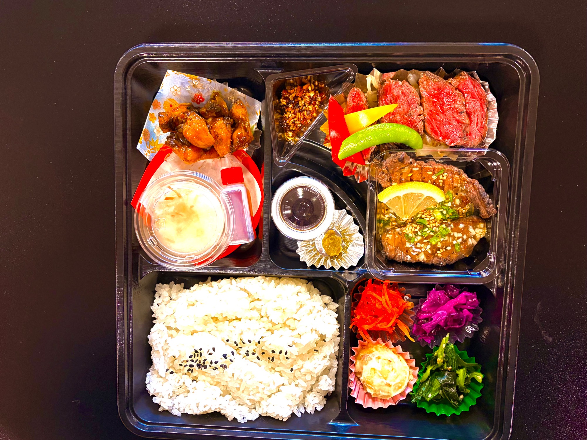 炭焼きハラミ&サイコロステーキ弁当炭焼き鶏つき1620円